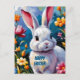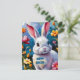 Adorable White Bunny Surrounded by Vibrant Flowers Postcard