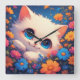 Adorable White Kitten With Bright Blue Eyes Square Wall Clock