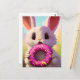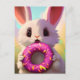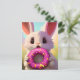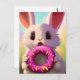 Adorable white rabbit with a pink doughnut postcard
