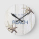 Adorable Wood Texture,Starfish,Beach Round Clock