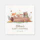 Cute woodland animals baby shower design featuring a forest scene with bear, fox & bunny .