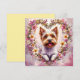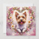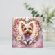 Charming image of a cute Yorkshire terrier framed by a vibrant heart-shaped floral wreath in a pastel watercolor background. Perfect for themes about pets, nature, and affection.