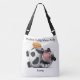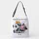 Cute image on a crossbody bag of a chubby cow with a delicious hotdog. Image says, "Working On My Winter Body," but you can customise with your own text by clicking on "Personalise."