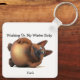 Cuddly image on a keychain of a chubby dog with the words, "Working On My Winter Body." Customise with your own name or other text by clicking on "Personalise."