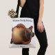 Cuddly image on a tote bag of a chubby dog with the words, "Working On My Winter Body." Customise with your own name or other text by clicking on "Personalise."