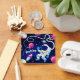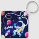 Fantastic image on a customised keychain of a cartoon spaceman floating in space amongst colourful planets. Click on "Personalise" to customise with your name or other text you like.