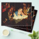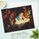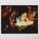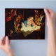 Adoration of the shepherds nativity scene with original oil painting by Honthorst in 1620. The scene with Jesus, Mary, and Joseph along with shepherds. http://frontiernow.com