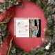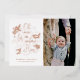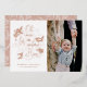 This beautiful photo holiday card features elegant text, reading, "Oh come let us adore Him" in real rose gold foil over a white background. Other design elements include pine boughs, leaves, berries, and little dots. The back of the card contains a matching pine boughs pattern in white over a custom colour background (shown in matte rose gold). For design or product enquiries, please contact me (Tracey) at orabellaprints@outlook.com.
