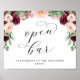 Adore Pink & Burgundy Floral Wedding open Bar sign with custom text poster - with the words "open bar" written out in a beautiful fancy calligraphy script font. An elegant, chic, yet simple design in a black font and any background colour you choose. Just click the customise further link, shown under the text personalisation area on the right, and choose your custom colour background. This sign template makes it fast and easy to create stunning additions to your wedding decor. complimentary decor, signs, and stationery available in my shop and collection below. If you need something designed that isn't available already please message me on zazzle.