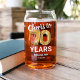 Cheers to 70 years birthday can glass featuring a seventy gold hellium balloon, and a simple text template that is easy to personalise.