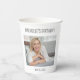 Custom women's birthday party paper cup personalised with the name and photo of the guest of honour and her party date. Contact me for assistance with your customisations or to request additional matching or coordinating Zazzle products for your celebration.
