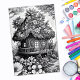 Fun adult blooming floral fairy house in a botanical flower forest 3D Ai generated colouring page poster wall art. Perfect for activity for relaxation and mindfulness. Makes a perfect gift!