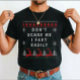 Inject some laughter into the holiday season with this 'Don't Scare Me I Fart Easily' t-shirt. Featuring a festive faux-knit design with reindeer and trees, this shirt blends classic Christmas vibes with a hilarious warning. Whether you're looking for the ultimate white elephant gift or a unique outfit for an ugly sweater party, this comfortable and funny tee is guaranteed to get a reaction. Wear this to your next office holiday party, family Christmas dinner, or neighborhood white elephant gift exchange. It also makes a hilarious gag gift for brothers, dads, or friends who are notoriously jumpy or known for their sense of humor.