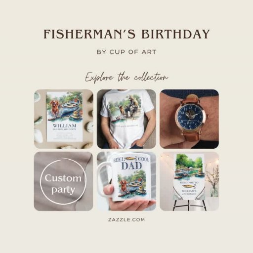 Adult Fishing Birthday Party design. Watercolor illustration with bright colours. Click the "customise further" button if you wish to re-arrange and format the style and placement of the text. Matching product can be found in Fishing Birthday Collection. Note: Photo is AI created please exchange with your Photo.