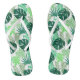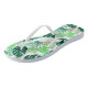 Adult flip flops perfect for all your summer fun,shown here in a tropical palms print with white straps and white soles.