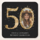Adult Gold Glitter 50th Birthday Photo Square Paper Coaster