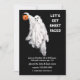 Funny Halloween costume party invites featuring creative trick-or-treating ghost.