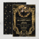 A vintage looking black and gold halloween party invitation card with a beautiful skull lovers design and antique frame.