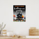 Welcome your guests in style with this spooky yet simple party sign! Featuring the text "Welcome to the [Your Name] Halloween Party" on both the front and back, the design uses a handwritten script calligraphy paired with a grunge sans serif font for a hauntingly stylish look. The black and white colour scheme highlights a haunted house at the centre, accented with pops of orange from pumpkins, jack-o'-lanterns, and eerie trees. Playful ghosts and bats add a whimsical touch, making this sign perfect for setting the tone of your Halloween celebration with a vintage charm. Ideal for greeting guests at the door and creating a fun, festive atmosphere!