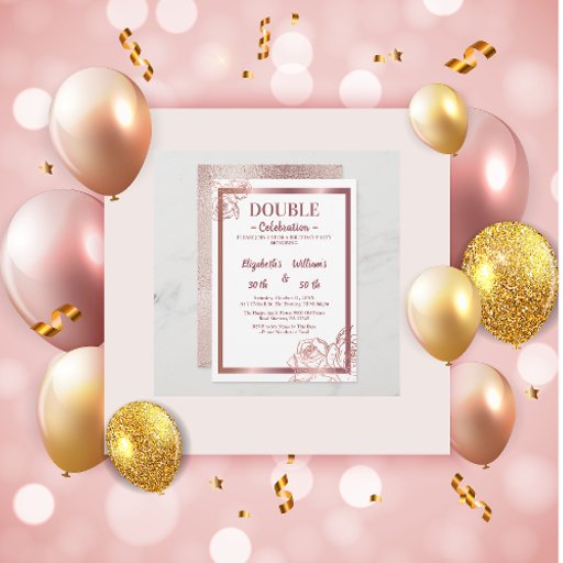 Adult Joint Double Birthday Party | Black Gold Invitation