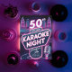 A retro, funky 50th birthday party invitation for women with a karaoke theme, featuring a 90s style illustration of a marquee with the cityscape backdrop, in hot pink neon glow over a dark navy background. A millennial favourite, this 90s laser, neon glow, retro arcade theme blends perfectly with a karaoke night for people who love to show their inner disco diva and let it all belt out.