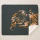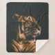 ADULT TIGER PRONE LYING INSIDE DIM LIGHTED ROOM SHERPA BLANKET