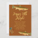 Adult male birthday party invitations for a fisherman. Spotted trout and fly fishing jig design on rust brown colour paper with light yellow text. Easily personalise with his name, in bold script, at the top. All party information is added in paragraph form. Choose print and / or download options. Reverse is solid yellow colour.