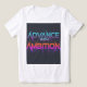 This eye-catching t-shirt features the bold message "Advance with Ambition" in vibrant, multi-coloured lettering.