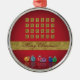Merry Christmas illustration featuring an advent calendar and colourful Christmas baubles on a red background.