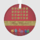 Merry Christmas illustration featuring an advent calendar and colourful Christmas baubles on a red background.