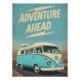 "Adventure Ahead" Vintage VW Bus Road Trip Poster