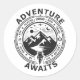 Hiking is the theme of this black and white stamp with bold words that capture the spirit of adventure. It features a serene landscape of majestic mountains, moon and stars.