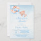 Adventure Awaits Blue Balloon Baby Shower Invitation, a fun way to celebrate the arrival of your little one. Invite friends and family to join in on the celebration with this cute teddy bear floating through the air with balloons, The blue, polka-dotted background is the perfect compliment to this boys baby shower invitation. This product includes an invitation and envelope, Your guests will enjoy the bright colours of this product! .Use easy template to add your party details.