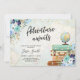 Adventure Awaits Blue Floral Travel Baby Shower Invitation
