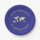 Celebrate a milestone birthday with these adventurous world traveler themed paper plates! Featuring a vintage-style map of the world in a rich gold hue against a deep blue background, these plates are perfect for a 21st birthday bash. The design includes a subtle compass rose and a charming airplane icon with a dotted line tracing a global journey, symbolizing a life of exploration and new beginnings. This unique design is ideal for anyone turning 21 who dreams of seeing the world or has a passion for travel. Make your special day unforgettable with these eye-catching plates that set the tone for a fantastic celebration.