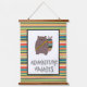Adorable wall tapestry features Boho Bear with his colourful quiver of arrows, "Adventure Awaits" text and multicolored striped background