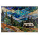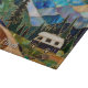 Bring the spirit of adventure into your kitchen with this stunning glass cutting board featuring a stained glass style mountain landscape and a cozy camper van.