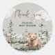 Adventure awaits cute forest bear baby shower classic round sticker