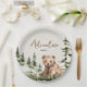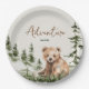Adventure awaits cute forest bear baby shower paper plate