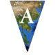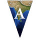 Realistic satellite images world globe printed bunting flags with the word "Adventure Awaits" in white text. Great for a nursery with an adventure theme, a classroom, or even a birthday party!
