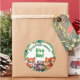 Adventure Awaits. It's a Boy baby shower stickers with a Woodland Creatures theme with cute racoon, squirrel and fox in a cute cartoon style surrounded by magical woods and fern foliage.