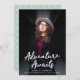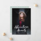 Trendy graduation announcements featuring the graduate's vertical photo with "Adventure Awaits" in white handwritten script lettering. Personalise the front of the Adventure Awaits graduation announcements by adding the graduate's name, school name, and graduation year. The announcement reverses to display an elegant mint green and white trellis pattern.