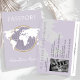 Travel-themed Gender Neutral Passport Baby Shower Invitation featuring soft lavender background, gold-accented globe illustration, and customisable event details.