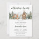 Get ready to welcome your little explorer with this adorable Adventure Awaits Woodland Baby Shower Invitation. Featuring a hand-painted mountain backdrop and a charming group of forest animals including a bear, fox, deer, racoon, owl, and bunny. This design captures the magic of nature and adventure. Perfect for outdoor, rustic, or woodland-themed showers, this invitation sets the tone for a warm and adventurous celebration. BBS487