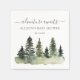 Add a finishing touch to your woodsy baby shower with these personalised napkins, featuring watercolor pine trees trees and warm grey typography.