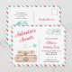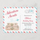 "Adventure Awaits" travel themed birthday invitation in blue and red. You can edit the text for any other occasion as well. This invite is an actual postcard that can be mailed without an envelope. You can order it as a decorative back as well. This and matching designs can be found in my Travel Aeroplane Collection in Red and Blue