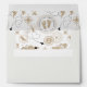 Complete your travel-themed baby shower suite with this coordinating envelope featuring a vintage world map liner, compass stamp, footprints, and personalised return address. Perfect for “Adventure Awaits” baby showers or destination events, this envelope adds a polished, global touch to your invitations.