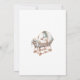 A cute baby shower invitation featuring a boho style mix of baby items from teddy bear to bodysuit, baby bottle and baby shoes with florals and feathers, in cream peach and brown hues.
