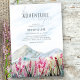 The Adventure Begins. Watercolor mountain wedding themed couples shower invitation with idyllic country landscape of blue ridge mountains and pink wildflower meadow. Beautiful nature inspired scenic design - perfect for outdoor destinations, mountain lakeside and country park retreats or dusty blue grey and pink colour themes. Please browse my Mountain Meadow collection for matching items or message me to create the templates you need.