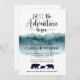 Let the adventure begin walking watercolor rustic bears baby shower invitation, with calligraphy script typography. This is also available in a downloadable version.